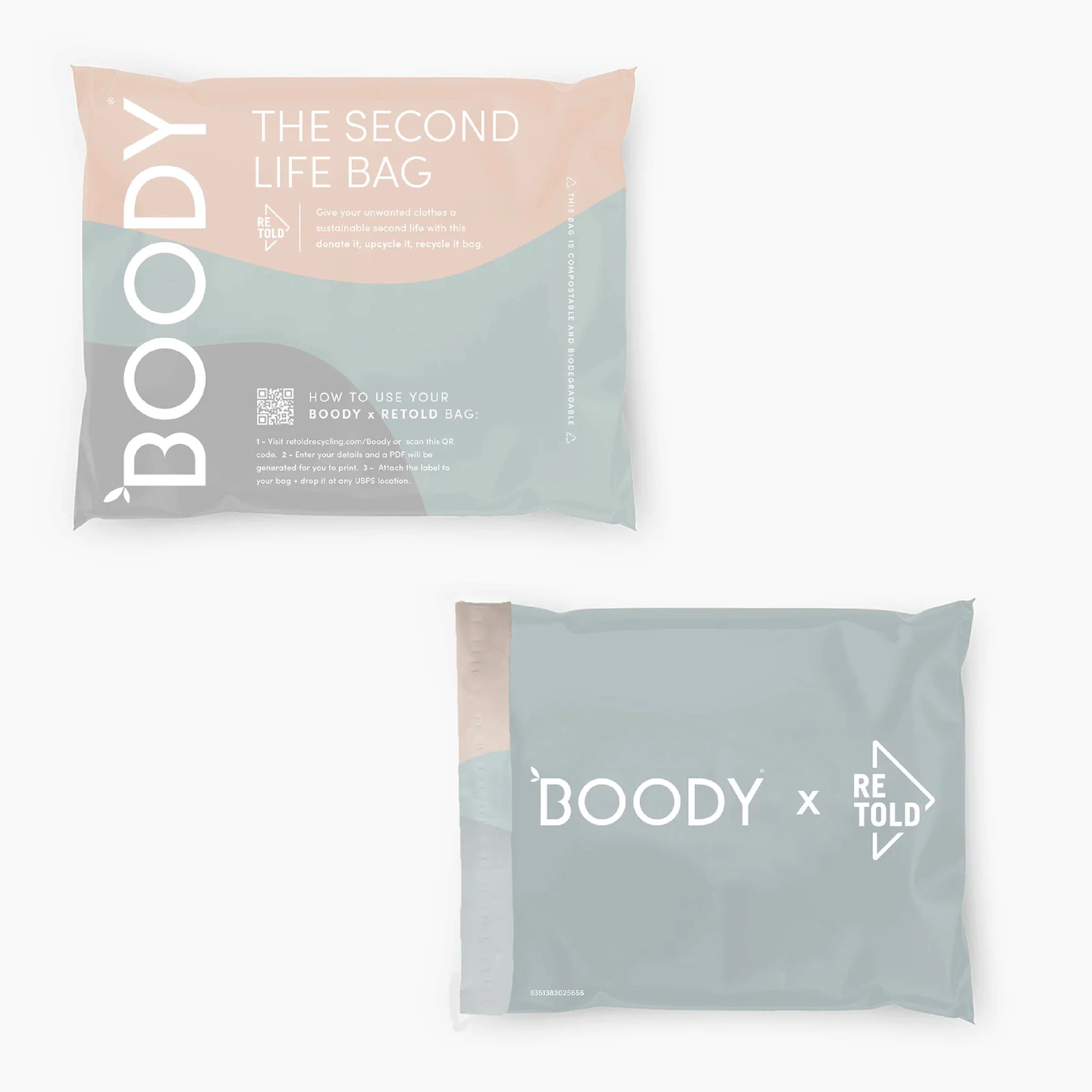 Sustainability as a Service: A consumer mail-in service for recycling textiles, featuring the Boody-branded Second Life Bags available at Boody.com. Customers purchase these biodegradable bags, fill them with unwanted clothes, print a shipping label from a dedicated Retold landing page, and mail them directly to Retold for sorting and recycling. Throughout the partnership, Boody and Retold have collaborated on messaging, promotions, and PR, enhancing Boody's brand transparency and eco-credibility by showcasing Retold’s impact on landfill diversion.